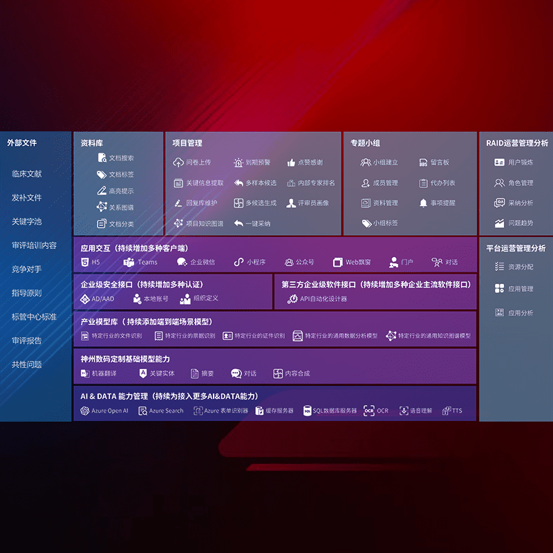 医疗器械产品上市前,,,,要熟悉严格与繁复评审标准,,整理分析监管机构指导文件中的海量信息。。。企业急需一个智能化解决方案,,,,提升知识管理效率,,,,提高评审通过率,,以提升其市场竞争力。。。